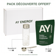 Nous recommandons l’abonnement car les bienfaits d’AY ENERGY® sont optimaux lorsqu’il est consommé quotidiennement et sur le long terme. Certains effets peuvent être ressentis dès les premières semaines, mais pour profiter pleinement de l’ensemble de ses avantages, la régularité est essentielle. L’abonnement vous garantit de ne jamais manquer votre dose quotidienne et vous offre en plus un meilleur rapport qualité-prix ainsi qu’une praticité accrue grâce à la livraison automatique. En choisissant l’abonnement, vous facilitez l’intégration d’AY ENERGY® dans votre routine et maximisez ses effets positifs sur votre santé et votre bien-être.